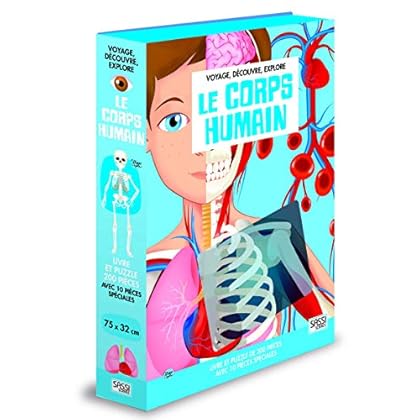 Puzzle offert à un enfant de 6ans. Il est vraiment beau et le carton est solide, parfait pour de nombreuses manipulations. Un livret de quelques pages format A4 expliquant la fonction du corps humain est collé à la boîte, pour les petits curieux. Nous sommes très contents de cet article.